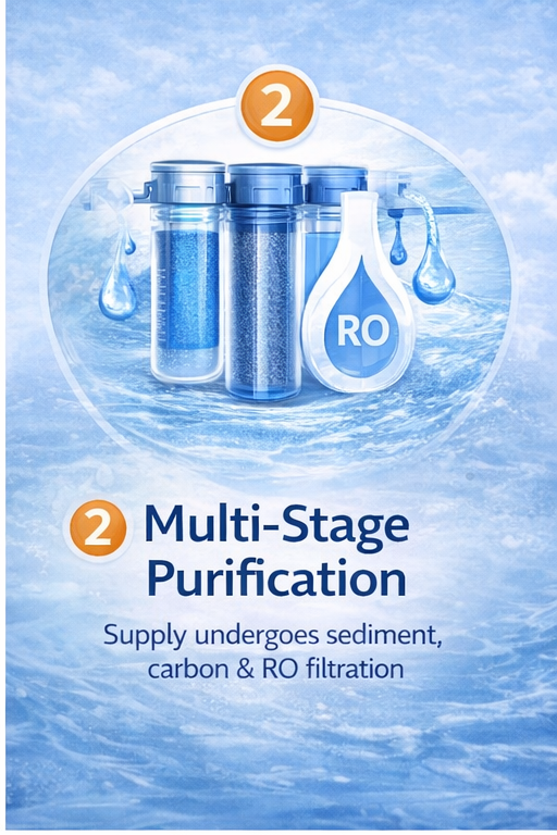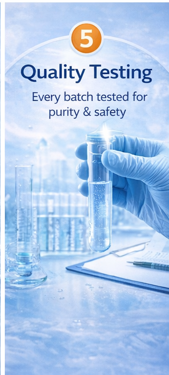 We carefully source and purify our water using advanced filtration processes to ensure every drop meets the highest standards of quality and hygiene. Our commitment goes beyond just hydration — we aim to deliver purity, freshness, and wellness in every bottle.